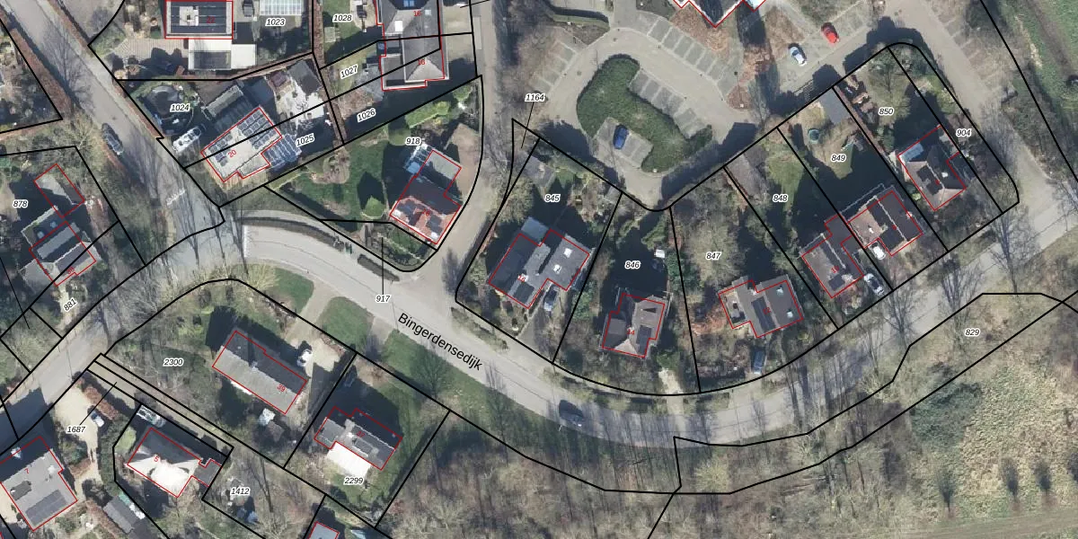 Het perceel waarop Bingerdensedijk 16 staat heeft een oppervlakte van 680 m². Dit is een groot perceel. De perceeloppervlakte wordt geregistreerd door het Kadaster. Gedetailleerde informatie over de maten van dit perceel kunt u vinden in het rapport Kadastrale kaart met maatvoering van Bingerdensedijk 16.