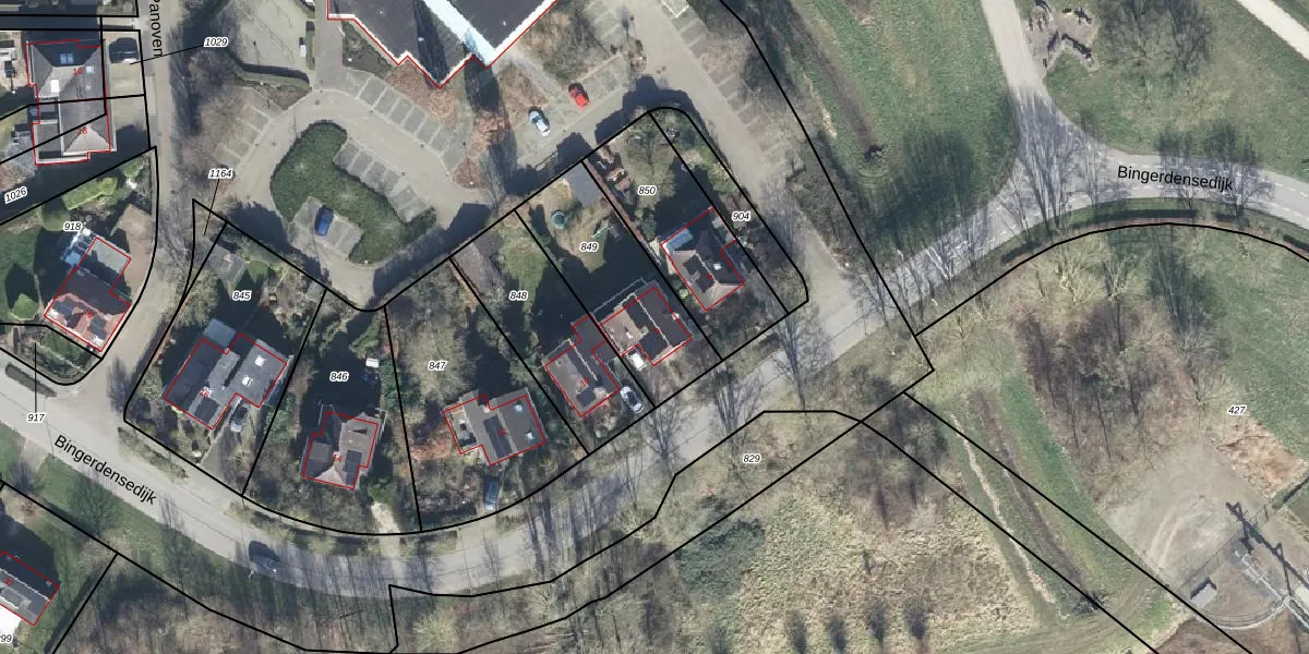 Bingerdensedijk 8 is gelegen op kadastraal perceel BAH00A849. Deze kadastrale aanduiding is uniek en wordt gebruikt door het Kadaster om eigendomsrechten en andere zakelijke rechten vast te leggen. Het perceel maakt onderdeel uit van de kadastrale gemeente Bahr en Lathum.