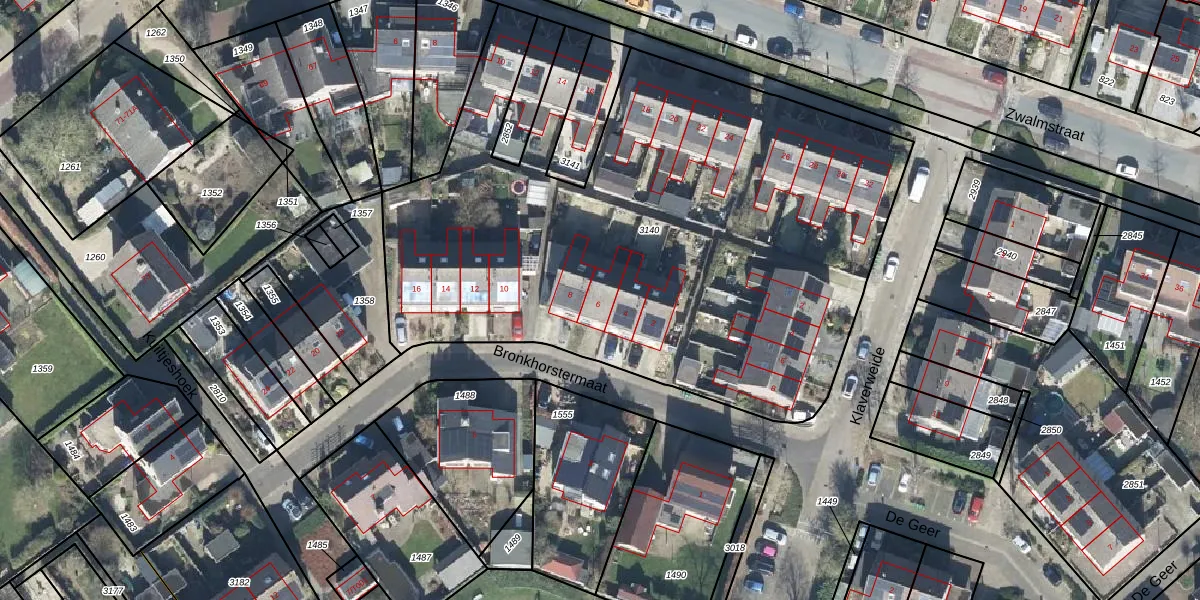 Het perceel waarop Bronkhorstermaat 6 staat heeft een oppervlakte van 3692 m². Dit is een zeer groot perceel. De perceeloppervlakte wordt geregistreerd door het Kadaster. Gedetailleerde informatie over de maten van dit perceel kunt u vinden in het rapport Kadastrale kaart met maatvoering van Bronkhorstermaat 6.