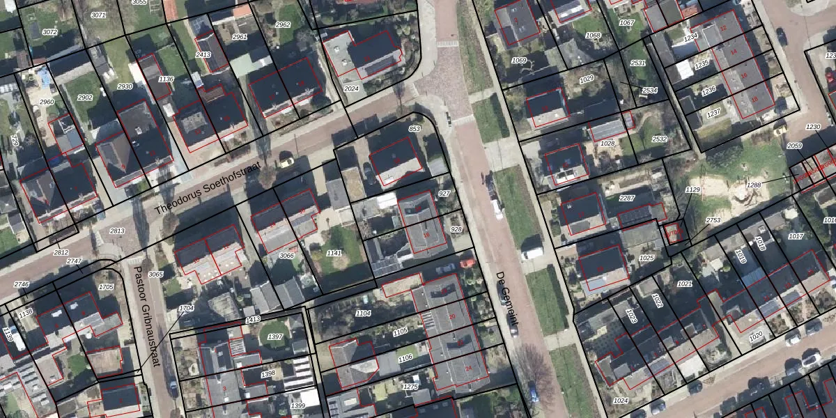 Gebruik de zoekbalk of klik op een perceel voor informatie over de adressen binnen dit perceel.