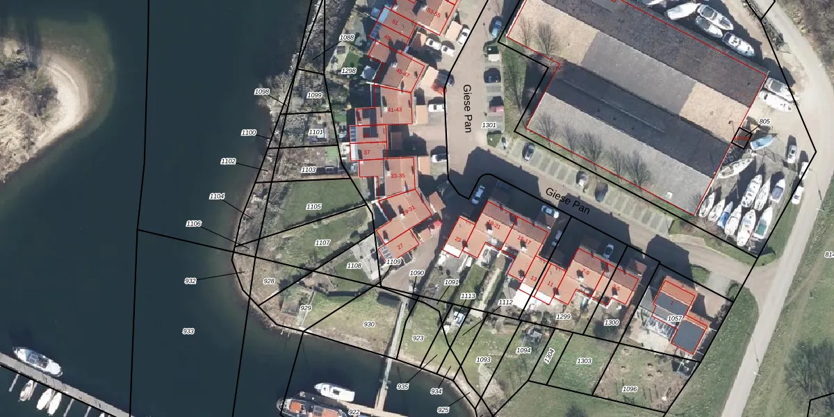 Het perceel waarop Giese Pan 31 staat heeft een oppervlakte van 3062 m². Dit is een zeer groot perceel. De perceeloppervlakte wordt geregistreerd door het Kadaster. Gedetailleerde informatie over de maten van dit perceel kunt u vinden in het rapport Kadastrale kaart met maatvoering van Giese Pan 31.