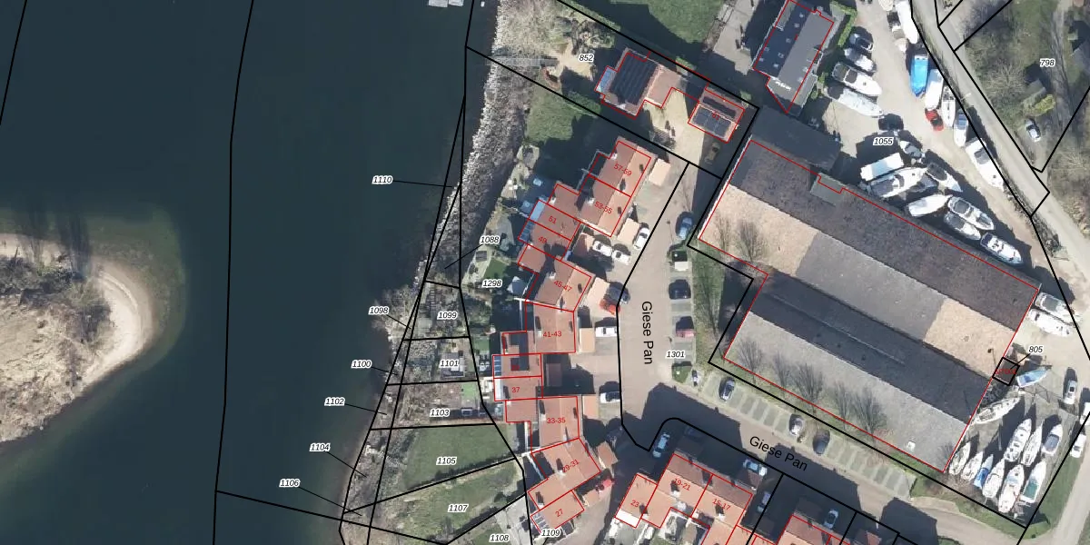 Het perceel waarop Giese Pan 45 staat heeft een oppervlakte van 3062 m². Dit is een zeer groot perceel. De perceeloppervlakte wordt geregistreerd door het Kadaster. Gedetailleerde informatie over de maten van dit perceel kunt u vinden in het rapport Kadastrale kaart met maatvoering van Giese Pan 45.