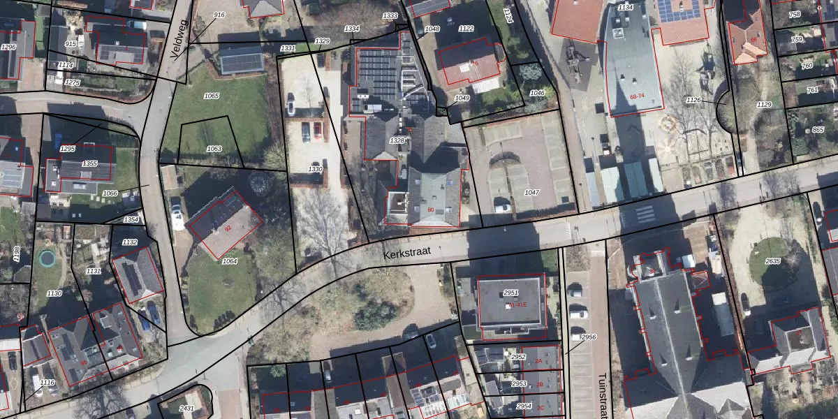 Het perceel waarop Kerkstraat 78 staat heeft een oppervlakte van 1309 m². Dit is een zeer groot perceel. De perceeloppervlakte wordt geregistreerd door het Kadaster. Gedetailleerde informatie over de maten van dit perceel kunt u vinden in het rapport Kadastrale kaart met maatvoering van Kerkstraat 78.