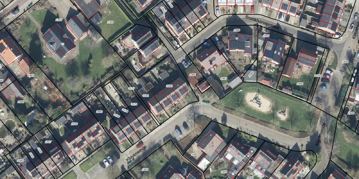Het perceel waarop Klaverweide 12 staat heeft een oppervlakte van 570 m². Dit is een groot perceel. De perceeloppervlakte wordt geregistreerd door het Kadaster. Gedetailleerde informatie over de maten van dit perceel kunt u vinden in het rapport Kadastrale kaart met maatvoering van Klaverweide 12.