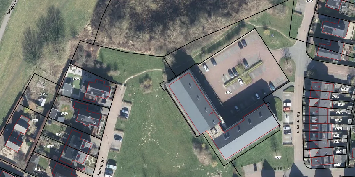 Het perceel waarop Steenoven 14 staat heeft een oppervlakte van 2993 m². Dit is een zeer groot perceel. De perceeloppervlakte wordt geregistreerd door het Kadaster. Gedetailleerde informatie over de maten van dit perceel kunt u vinden in het rapport Kadastrale kaart met maatvoering van Steenoven 14.