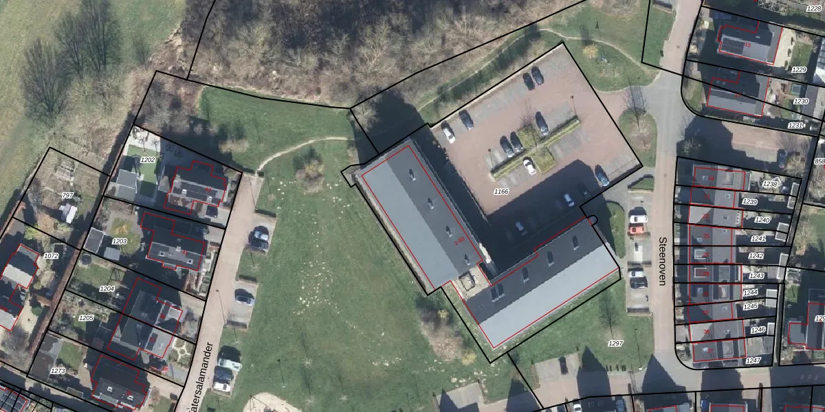Het perceel waarop Steenoven 30 staat heeft een oppervlakte van 2993 m². Dit is een zeer groot perceel. De perceeloppervlakte wordt geregistreerd door het Kadaster. Gedetailleerde informatie over de maten van dit perceel kunt u vinden in het rapport Kadastrale kaart met maatvoering van Steenoven 30.