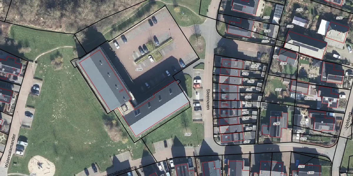 Het perceel waarop Steenoven 34 staat heeft een oppervlakte van 2993 m². Dit is een zeer groot perceel. De perceeloppervlakte wordt geregistreerd door het Kadaster. Gedetailleerde informatie over de maten van dit perceel kunt u vinden in het rapport Kadastrale kaart met maatvoering van Steenoven 34.