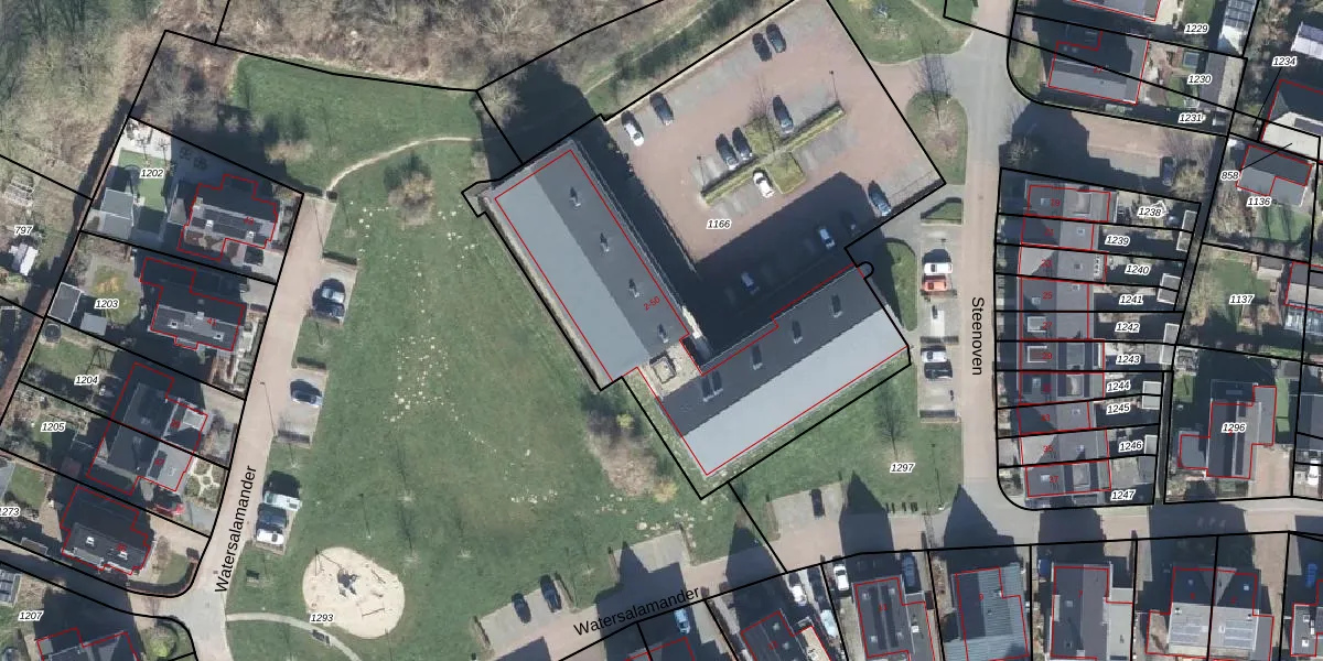 Het perceel waarop Steenoven 44 staat heeft een oppervlakte van 2993 m². Dit is een zeer groot perceel. De perceeloppervlakte wordt geregistreerd door het Kadaster. Gedetailleerde informatie over de maten van dit perceel kunt u vinden in het rapport Kadastrale kaart met maatvoering van Steenoven 44.