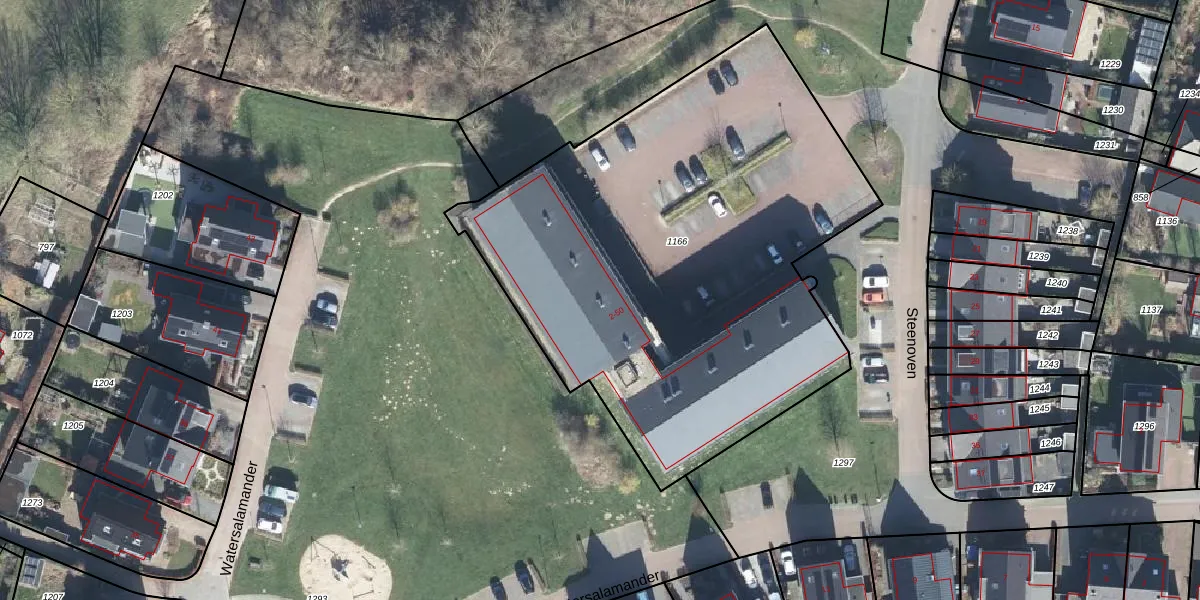 Het perceel waarop Steenoven 46 staat heeft een oppervlakte van 2993 m². Dit is een zeer groot perceel. De perceeloppervlakte wordt geregistreerd door het Kadaster. Gedetailleerde informatie over de maten van dit perceel kunt u vinden in het rapport Kadastrale kaart met maatvoering van Steenoven 46.