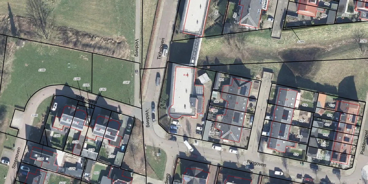 Het perceel waarop Ticheloven 18 staat heeft een oppervlakte van 992 m². Dit is een groot perceel. De perceeloppervlakte wordt geregistreerd door het Kadaster. Gedetailleerde informatie over de maten van dit perceel kunt u vinden in het rapport Kadastrale kaart met maatvoering van Ticheloven 18.