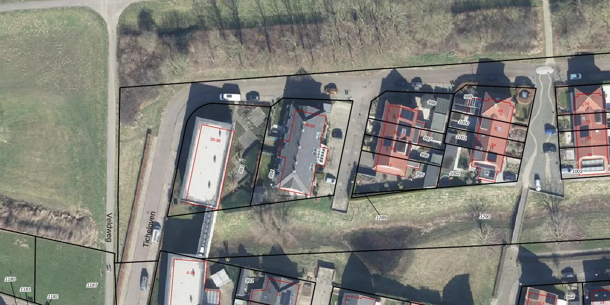 Het perceel waarop Ticheloven 40 staat heeft een oppervlakte van 877 m². Dit is een groot perceel. De perceeloppervlakte wordt geregistreerd door het Kadaster. Gedetailleerde informatie over de maten van dit perceel kunt u vinden in het rapport Kadastrale kaart met maatvoering van Ticheloven 40.