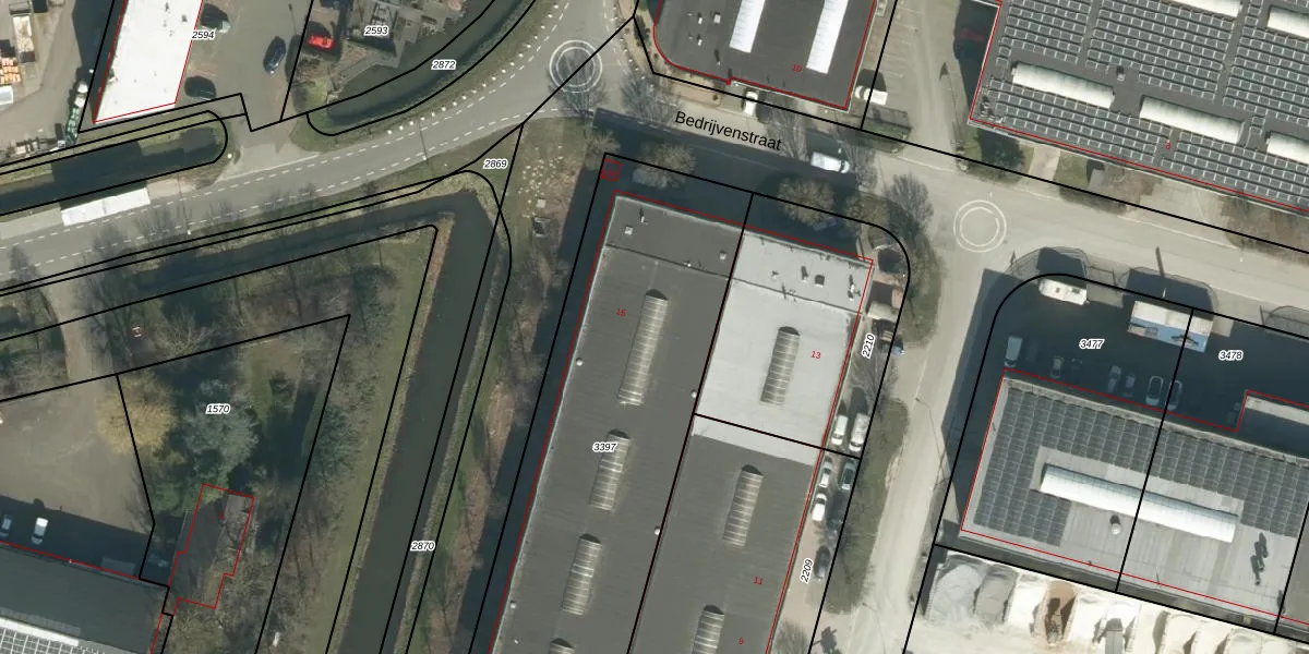 Het perceel waarop Bedrijvenstraat 15 staat heeft een oppervlakte van 2038 m². Dit is een zeer groot perceel. De perceeloppervlakte wordt geregistreerd door het Kadaster. Gedetailleerde informatie over de maten van dit perceel kunt u vinden in het rapport Kadastrale kaart met maatvoering van Bedrijvenstraat 15.