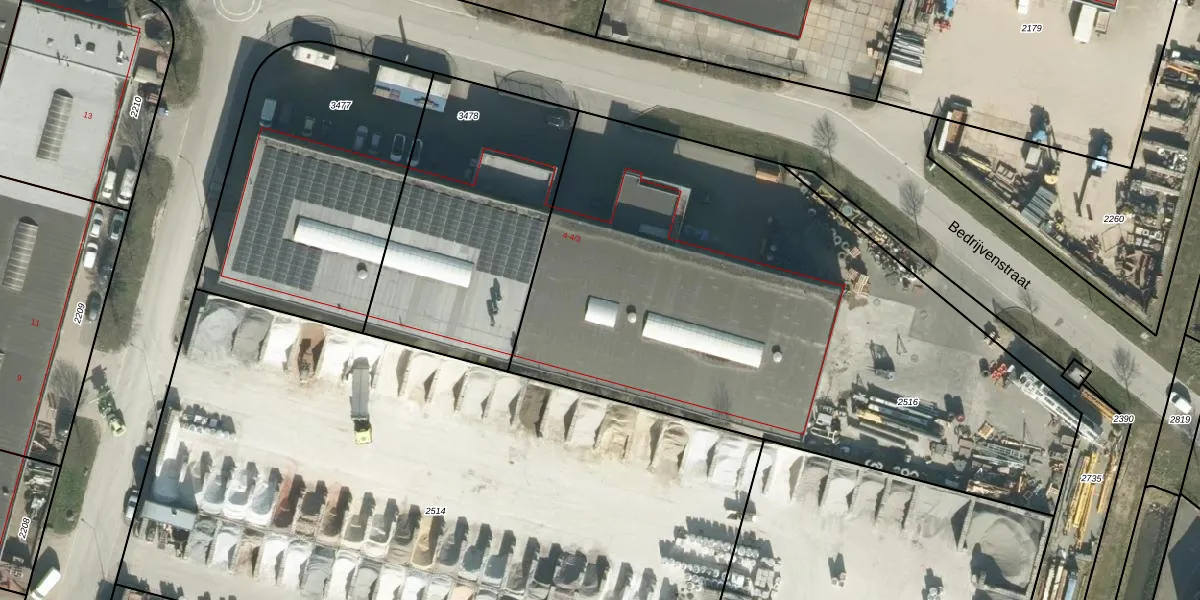 Het perceel waarop Bedrijvenstraat 4-3 staat heeft een oppervlakte van 3435 m². Dit is een zeer groot perceel. De perceeloppervlakte wordt geregistreerd door het Kadaster. Gedetailleerde informatie over de maten van dit perceel kunt u vinden in het rapport Kadastrale kaart met maatvoering van Bedrijvenstraat 4-3.