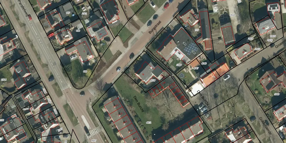 Het perceel waarop Burgstraat 38 staat heeft een oppervlakte van 470 m². Dit is een groot perceel. De perceeloppervlakte wordt geregistreerd door het Kadaster. Gedetailleerde informatie over de maten van dit perceel kunt u vinden in het rapport Kadastrale kaart met maatvoering van Burgstraat 38.