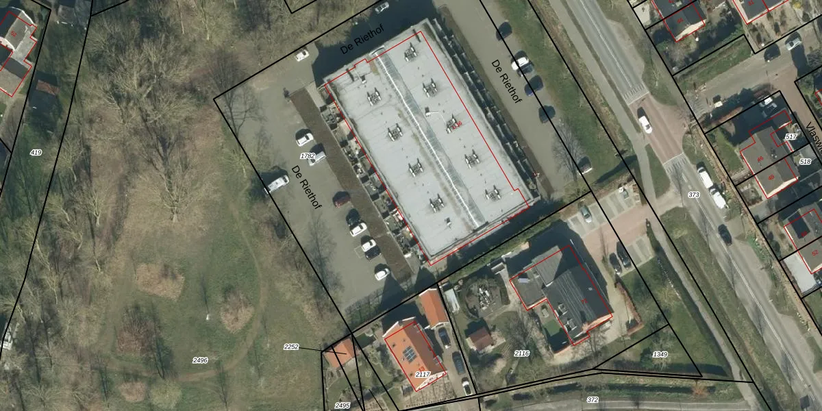Het perceel waarop De Riethof 3 staat heeft een oppervlakte van 4486 m². Dit is een zeer groot perceel. De perceeloppervlakte wordt geregistreerd door het Kadaster. Gedetailleerde informatie over de maten van dit perceel kunt u vinden in het rapport Kadastrale kaart met maatvoering van De Riethof 3.