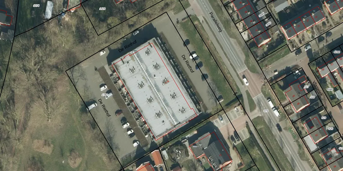 Het perceel waarop De Riethof 8 staat heeft een oppervlakte van 4486 m². Dit is een zeer groot perceel. De perceeloppervlakte wordt geregistreerd door het Kadaster. Gedetailleerde informatie over de maten van dit perceel kunt u vinden in het rapport Kadastrale kaart met maatvoering van De Riethof 8.