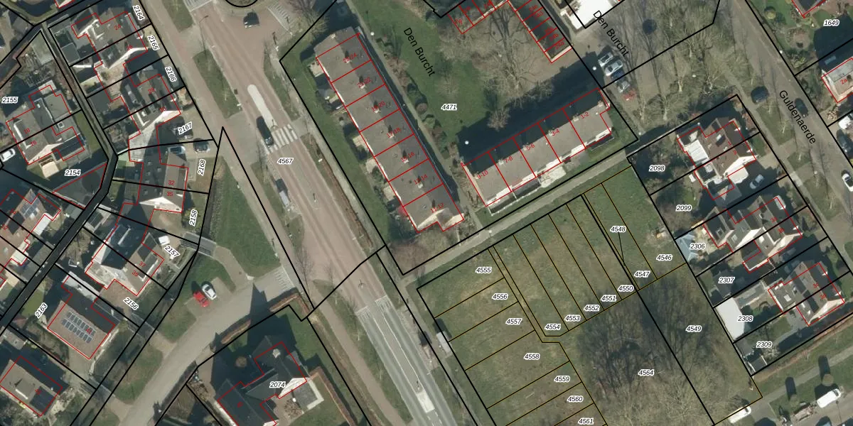Het perceel waarop Den Burcht 12 staat heeft een oppervlakte van 3500 m². Dit is een zeer groot perceel. De perceeloppervlakte wordt geregistreerd door het Kadaster. Gedetailleerde informatie over de maten van dit perceel kunt u vinden in het rapport Kadastrale kaart met maatvoering van Den Burcht 12.