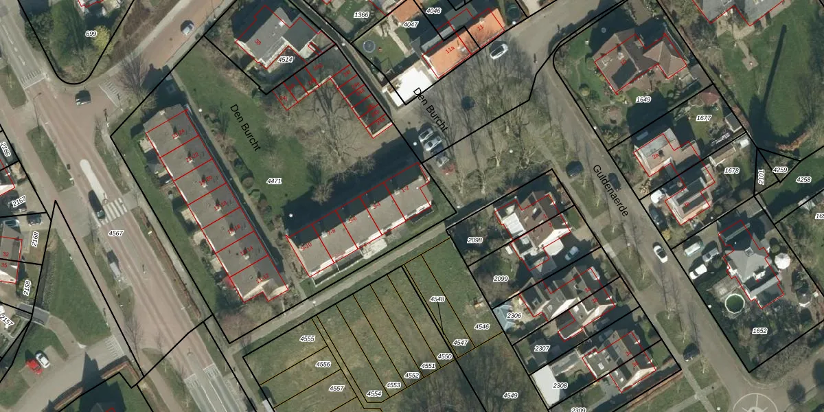 Het perceel waarop Den Burcht 2 staat heeft een oppervlakte van 3500 m². Dit is een zeer groot perceel. De perceeloppervlakte wordt geregistreerd door het Kadaster. Gedetailleerde informatie over de maten van dit perceel kunt u vinden in het rapport Kadastrale kaart met maatvoering van Den Burcht 2.