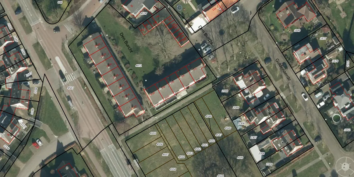 Het perceel waarop Den Burcht 6 staat heeft een oppervlakte van 3500 m². Dit is een zeer groot perceel. De perceeloppervlakte wordt geregistreerd door het Kadaster. Gedetailleerde informatie over de maten van dit perceel kunt u vinden in het rapport Kadastrale kaart met maatvoering van Den Burcht 6.
