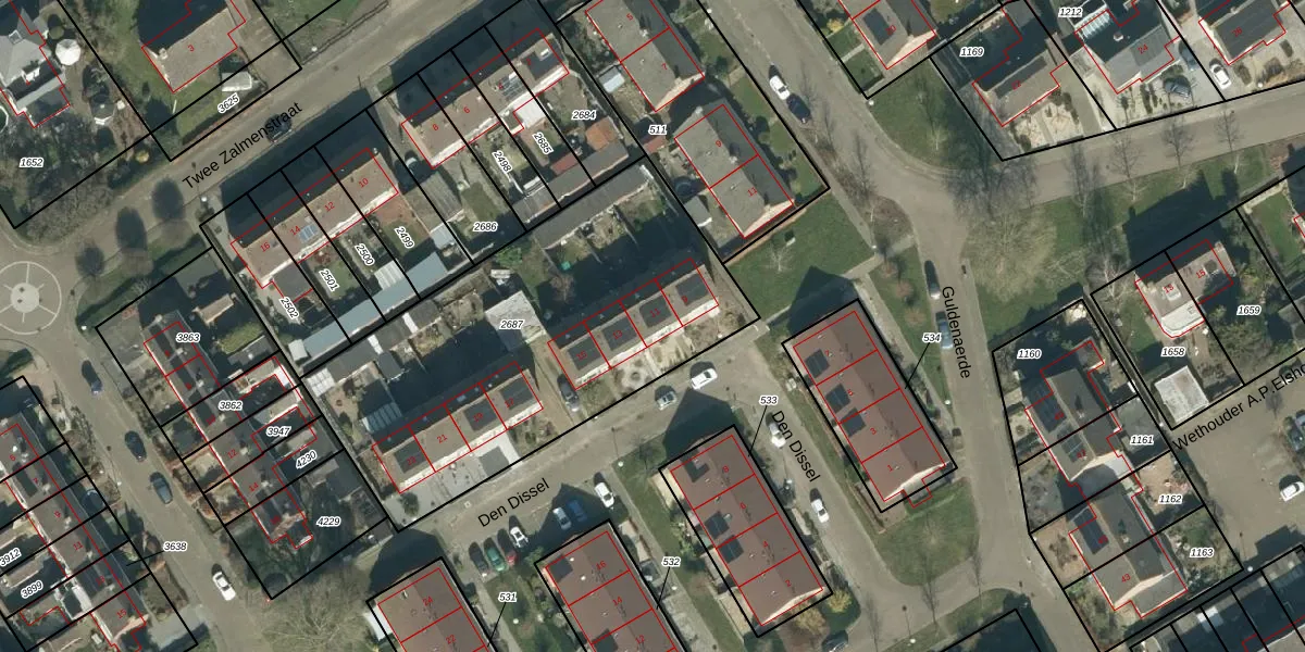 Het perceel waarop Den Dissel 11 staat heeft een oppervlakte van 1815 m². Dit is een zeer groot perceel. De perceeloppervlakte wordt geregistreerd door het Kadaster. Gedetailleerde informatie over de maten van dit perceel kunt u vinden in het rapport Kadastrale kaart met maatvoering van Den Dissel 11.