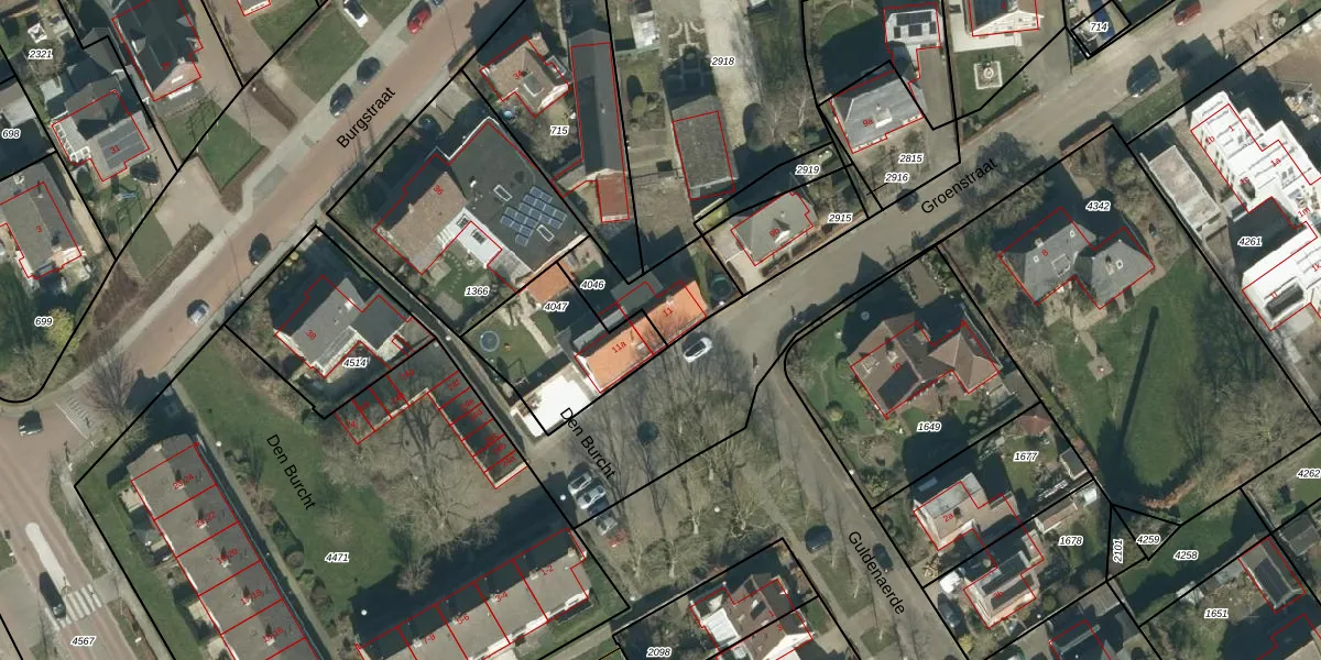 Groenstraat 11 is gelegen op kadastraal perceel WDC00H4046. Deze kadastrale aanduiding is uniek en wordt gebruikt door het Kadaster om eigendomsrechten en andere zakelijke rechten vast te leggen. Het perceel maakt onderdeel uit van de kadastrale gemeente Woudrichem.