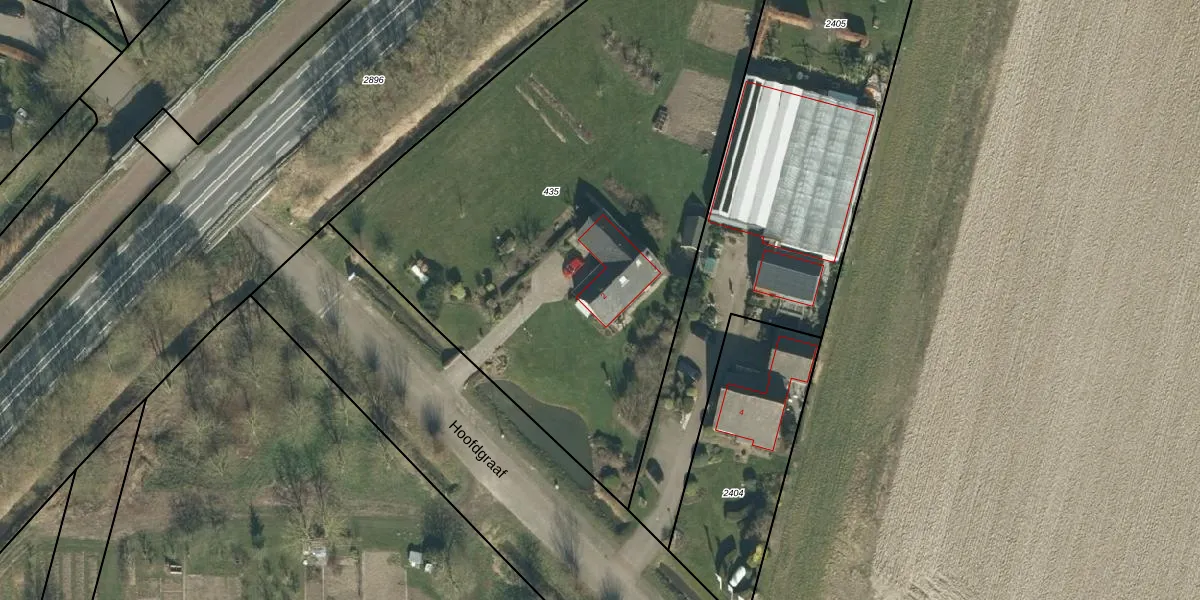 Het perceel waarop Hoofdgraaf 2 staat heeft een oppervlakte van 3650 m². Dit is een zeer groot perceel. De perceeloppervlakte wordt geregistreerd door het Kadaster. Gedetailleerde informatie over de maten van dit perceel kunt u vinden in het rapport Kadastrale kaart met maatvoering van Hoofdgraaf 2.