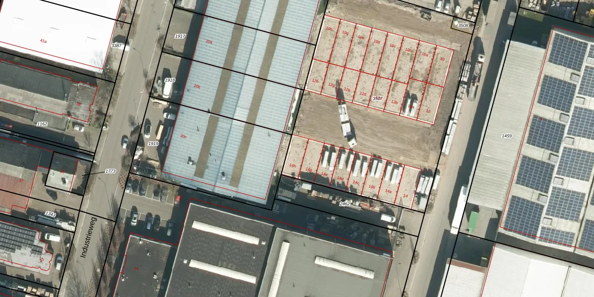 Industrieweg 14-h is gelegen op kadastraal perceel WDC00I3507. Deze kadastrale aanduiding is uniek en wordt gebruikt door het Kadaster om eigendomsrechten en andere zakelijke rechten vast te leggen. Het perceel maakt onderdeel uit van de kadastrale gemeente Woudrichem.