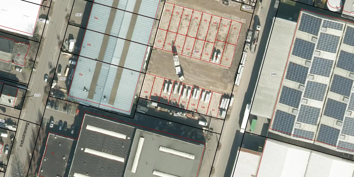Industrieweg 14-d is gelegen op kadastraal perceel WDC00I3507. Deze kadastrale aanduiding is uniek en wordt gebruikt door het Kadaster om eigendomsrechten en andere zakelijke rechten vast te leggen. Het perceel maakt onderdeel uit van de kadastrale gemeente Woudrichem.