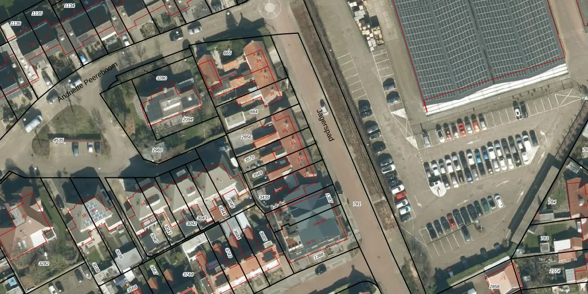 Het perceel waarop Jagerspad 16 staat heeft een oppervlakte van 162 m². Dit is een middelgroot perceel. De perceeloppervlakte wordt geregistreerd door het Kadaster. Gedetailleerde informatie over de maten van dit perceel kunt u vinden in het rapport Kadastrale kaart met maatvoering van Jagerspad 16.