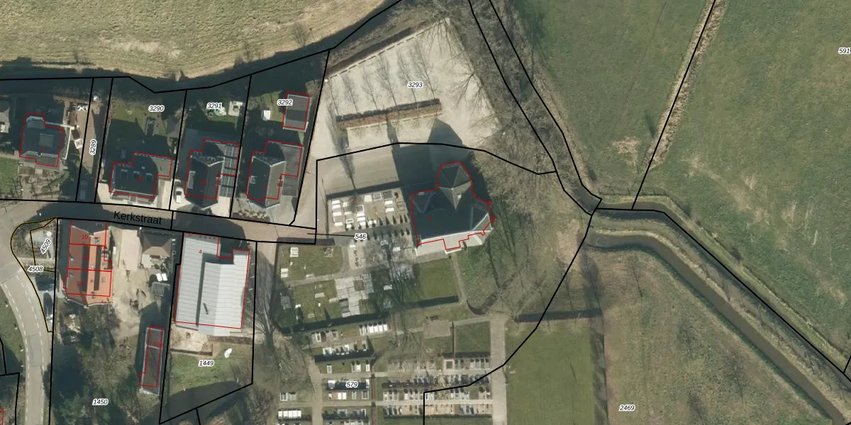 Het perceel waarop Kerkstraat 2 staat heeft een oppervlakte van 7230 m². Dit is een zeer groot perceel. De perceeloppervlakte wordt geregistreerd door het Kadaster. Gedetailleerde informatie over de maten van dit perceel kunt u vinden in het rapport Kadastrale kaart met maatvoering van Kerkstraat 2.