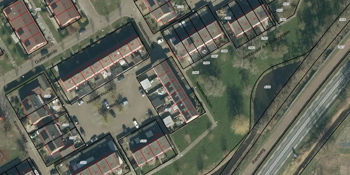 Het perceel waarop Nieuwenhuizen 6 staat heeft een oppervlakte van 884 m². Dit is een groot perceel. De perceeloppervlakte wordt geregistreerd door het Kadaster. Gedetailleerde informatie over de maten van dit perceel kunt u vinden in het rapport Kadastrale kaart met maatvoering van Nieuwenhuizen 6.