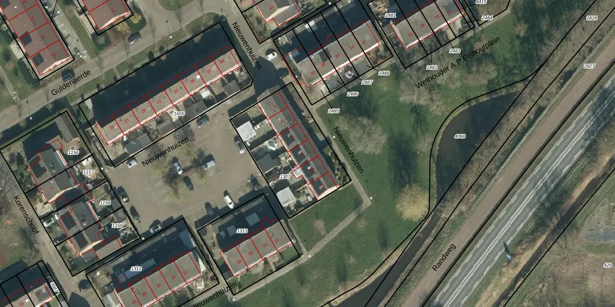 Het perceel waarop Nieuwenhuizen 8 staat heeft een oppervlakte van 884 m². Dit is een groot perceel. De perceeloppervlakte wordt geregistreerd door het Kadaster. Gedetailleerde informatie over de maten van dit perceel kunt u vinden in het rapport Kadastrale kaart met maatvoering van Nieuwenhuizen 8.