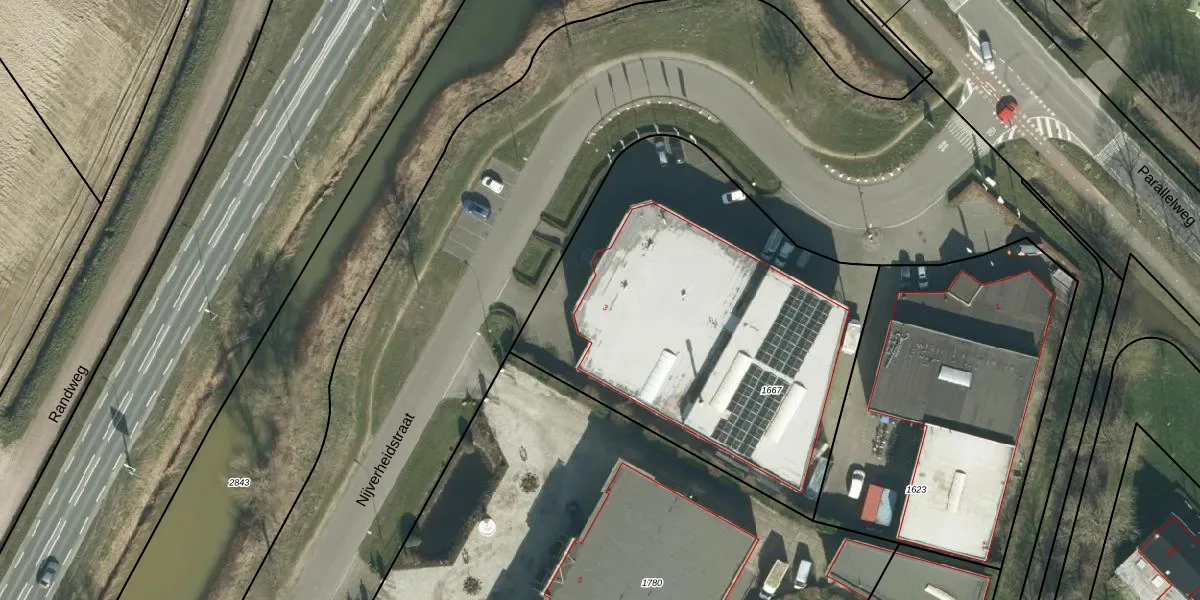 Het perceel waarop Nijverheidstraat 3 staat heeft een oppervlakte van 2198 m². Dit is een zeer groot perceel. De perceeloppervlakte wordt geregistreerd door het Kadaster. Gedetailleerde informatie over de maten van dit perceel kunt u vinden in het rapport Kadastrale kaart met maatvoering van Nijverheidstraat 3.