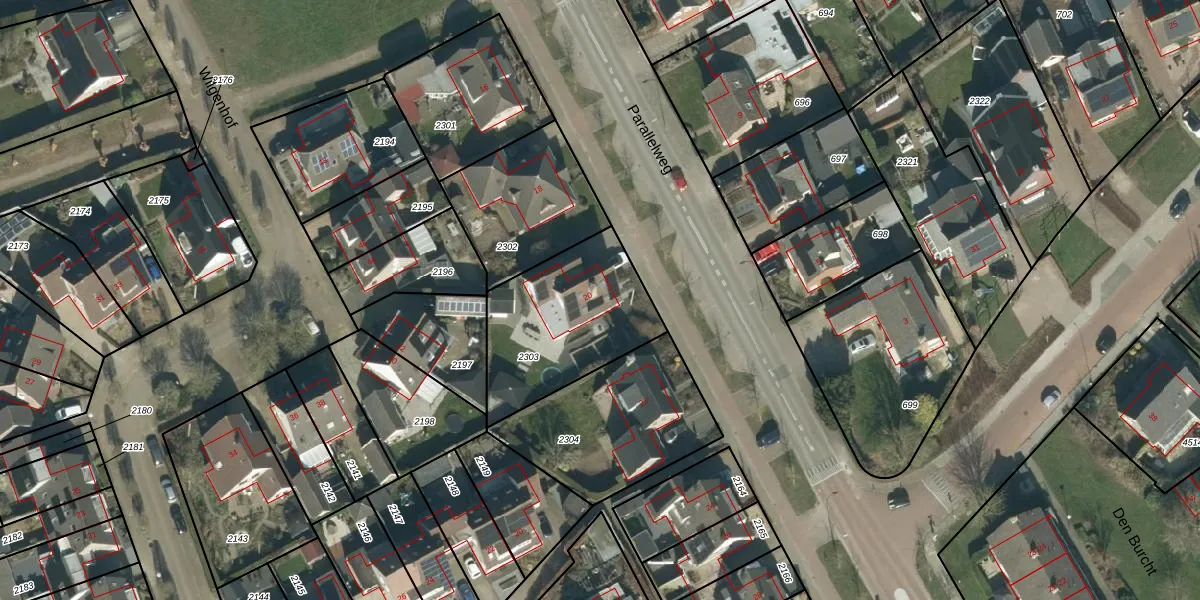 Parallelweg 20 is gelegen op kadastraal perceel WDC00H2303. Deze kadastrale aanduiding is uniek en wordt gebruikt door het Kadaster om eigendomsrechten en andere zakelijke rechten vast te leggen. Het perceel maakt onderdeel uit van de kadastrale gemeente Woudrichem.