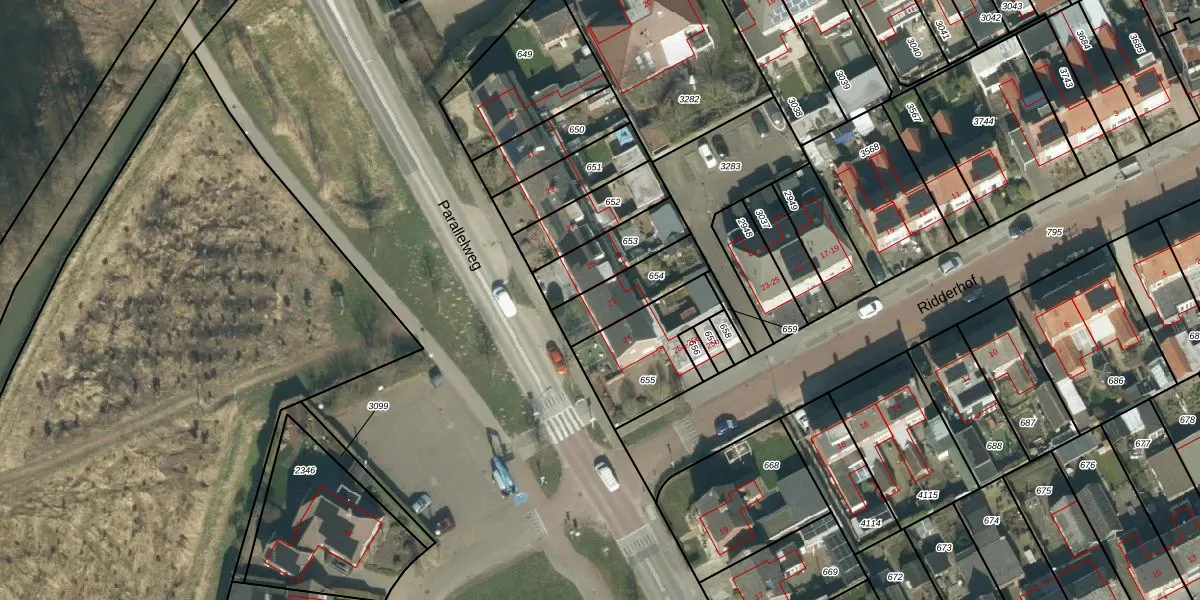 Parallelweg 23 is gelegen op kadastraal perceel WDC00H654. Deze kadastrale aanduiding is uniek en wordt gebruikt door het Kadaster om eigendomsrechten en andere zakelijke rechten vast te leggen. Het perceel maakt onderdeel uit van de kadastrale gemeente Woudrichem.
