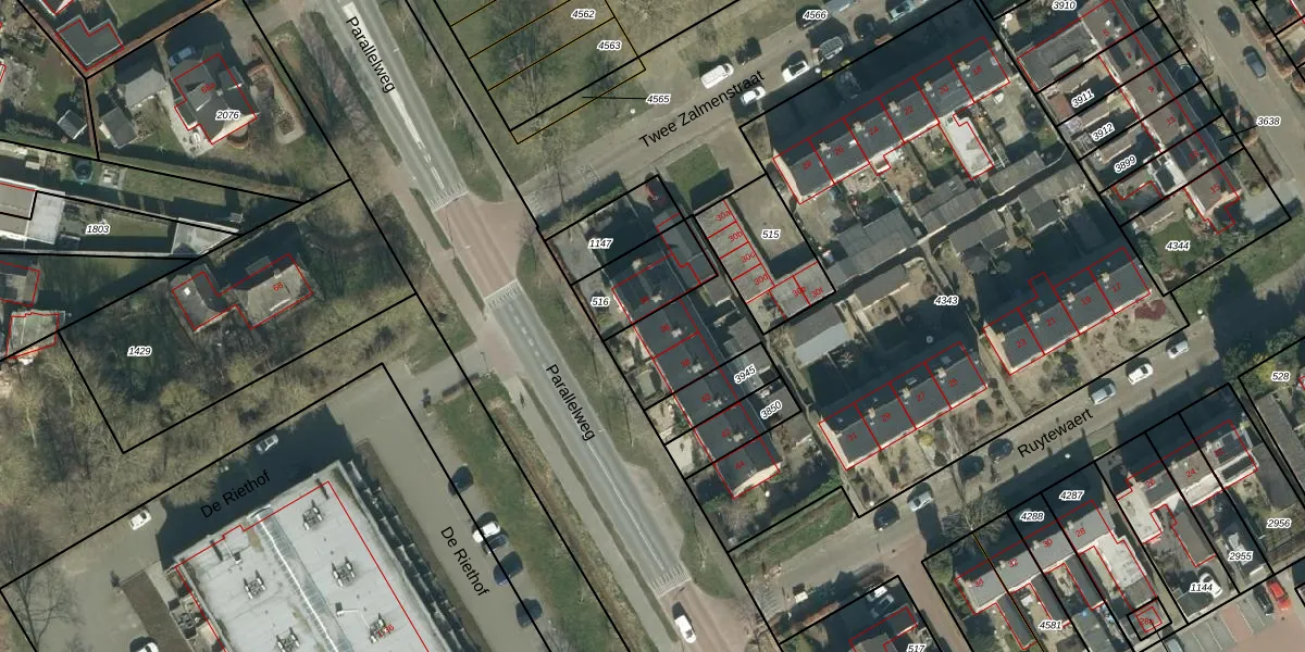 Het perceel waarop Parallelweg 36 staat heeft een oppervlakte van 3554 m². Dit is een zeer groot perceel. De perceeloppervlakte wordt geregistreerd door het Kadaster. Gedetailleerde informatie over de maten van dit perceel kunt u vinden in het rapport Kadastrale kaart met maatvoering van Parallelweg 36.