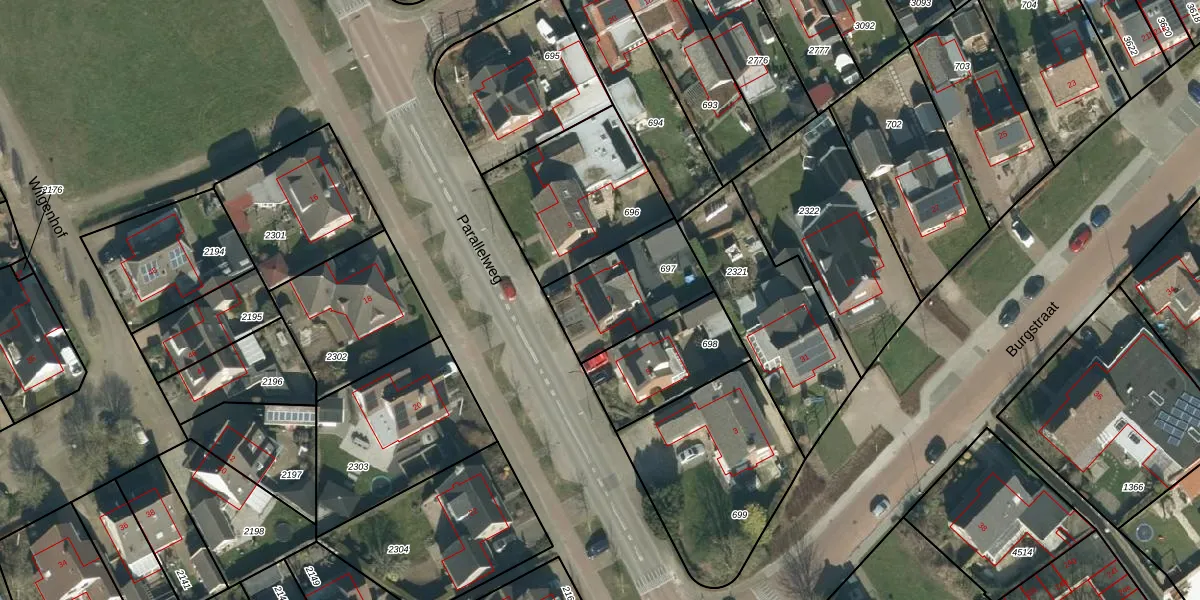 Het perceel waarop Parallelweg 7 staat heeft een oppervlakte van 355 m². Dit is een groot perceel. De perceeloppervlakte wordt geregistreerd door het Kadaster. Gedetailleerde informatie over de maten van dit perceel kunt u vinden in het rapport Kadastrale kaart met maatvoering van Parallelweg 7.