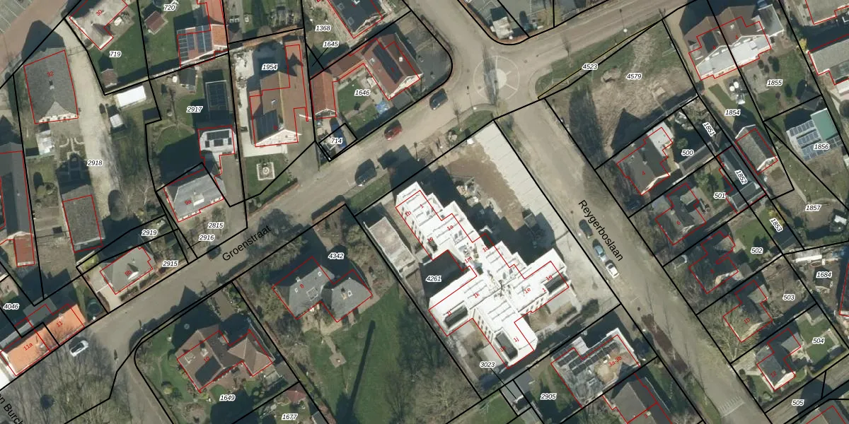 Het perceel waarop Reygerboslaan 1 staat heeft een oppervlakte van 2099 m². Dit is een zeer groot perceel. De perceeloppervlakte wordt geregistreerd door het Kadaster. Gedetailleerde informatie over de maten van dit perceel kunt u vinden in het rapport Kadastrale kaart met maatvoering van Reygerboslaan 1.