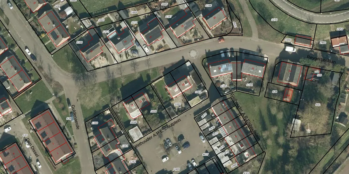 Reygerboslaan 17 is gelegen op kadastraal perceel WDC00H1660. Deze kadastrale aanduiding is uniek en wordt gebruikt door het Kadaster om eigendomsrechten en andere zakelijke rechten vast te leggen. Het perceel maakt onderdeel uit van de kadastrale gemeente Woudrichem.