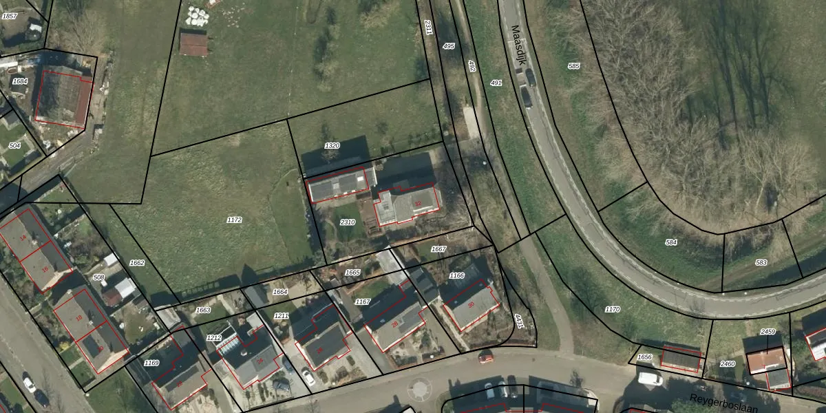 Reygerboslaan 32 is gelegen op kadastraal perceel WDC00H2310. Deze kadastrale aanduiding is uniek en wordt gebruikt door het Kadaster om eigendomsrechten en andere zakelijke rechten vast te leggen. Het perceel maakt onderdeel uit van de kadastrale gemeente Woudrichem.