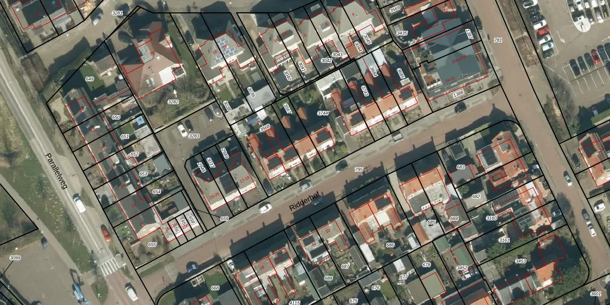 Het perceel waarop Ridderhof 11 staat heeft een oppervlakte van 162 m². Dit is een middelgroot perceel. De perceeloppervlakte wordt geregistreerd door het Kadaster. Gedetailleerde informatie over de maten van dit perceel kunt u vinden in het rapport Kadastrale kaart met maatvoering van Ridderhof 11.