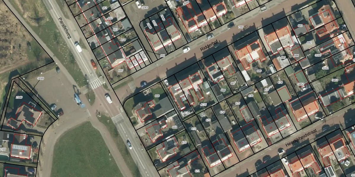Het perceel waarop Ridderhof 18 staat heeft een oppervlakte van 229 m². Dit is een middelgroot perceel. De perceeloppervlakte wordt geregistreerd door het Kadaster. Gedetailleerde informatie over de maten van dit perceel kunt u vinden in het rapport Kadastrale kaart met maatvoering van Ridderhof 18.
