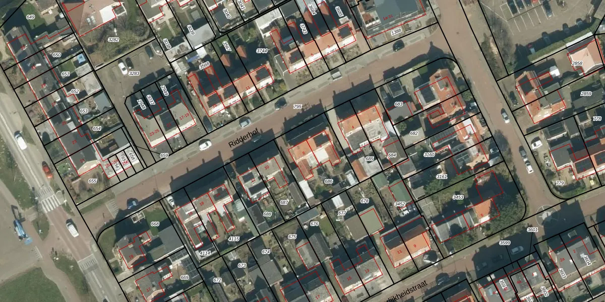 Het perceel waarop Ridderhof 8 staat heeft een oppervlakte van 483 m². Dit is een groot perceel. De perceeloppervlakte wordt geregistreerd door het Kadaster. Gedetailleerde informatie over de maten van dit perceel kunt u vinden in het rapport Kadastrale kaart met maatvoering van Ridderhof 8.
