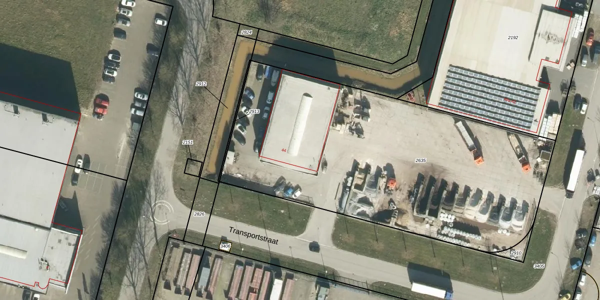 Het perceel waarop Transportstraat 44 staat heeft een oppervlakte van 4350 m². Dit is een zeer groot perceel. De perceeloppervlakte wordt geregistreerd door het Kadaster. Gedetailleerde informatie over de maten van dit perceel kunt u vinden in het rapport Kadastrale kaart met maatvoering van Transportstraat 44.