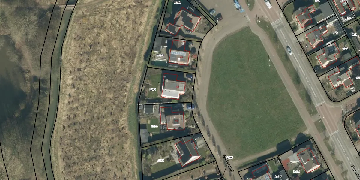 Wilgenhof 43 is gelegen op kadastraal perceel WDC00H2170. Deze kadastrale aanduiding is uniek en wordt gebruikt door het Kadaster om eigendomsrechten en andere zakelijke rechten vast te leggen. Het perceel maakt onderdeel uit van de kadastrale gemeente Woudrichem.