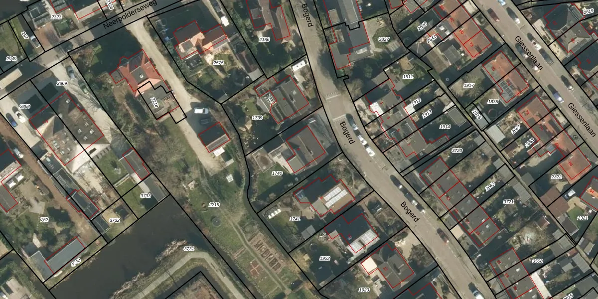 Het perceel waarop Bogerd 6 staat heeft een oppervlakte van 575 m². Dit is een groot perceel. De perceeloppervlakte wordt geregistreerd door het Kadaster. Gedetailleerde informatie over de maten van dit perceel kunt u vinden in het rapport Kadastrale kaart met maatvoering van Bogerd 6.