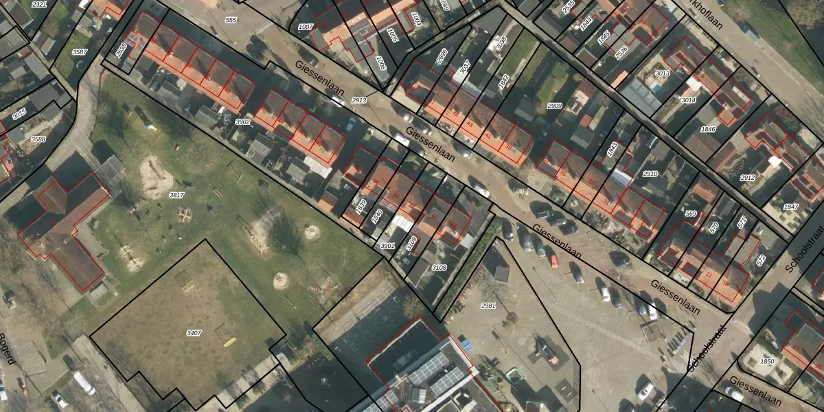 Giessenlaan 32 is gelegen op kadastraal perceel GSB00G3901. Deze kadastrale aanduiding is uniek en wordt gebruikt door het Kadaster om eigendomsrechten en andere zakelijke rechten vast te leggen. Het perceel maakt onderdeel uit van de kadastrale gemeente Giessenburg.