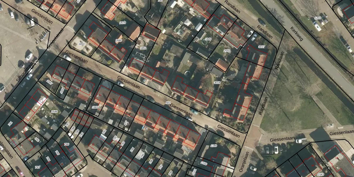 Giessenlaan 5 is gelegen op kadastraal perceel GSB00G3018. Deze kadastrale aanduiding is uniek en wordt gebruikt door het Kadaster om eigendomsrechten en andere zakelijke rechten vast te leggen. Het perceel maakt onderdeel uit van de kadastrale gemeente Giessenburg.