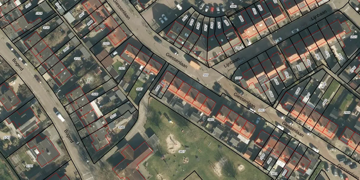 Giessenlaan 54 is gelegen op kadastraal perceel GSB00G3902. Deze kadastrale aanduiding is uniek en wordt gebruikt door het Kadaster om eigendomsrechten en andere zakelijke rechten vast te leggen. Het perceel maakt onderdeel uit van de kadastrale gemeente Giessenburg.