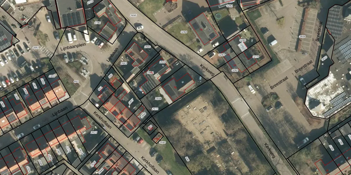 Gebruik de zoekbalk of klik op een perceel voor informatie over de adressen binnen dit perceel.